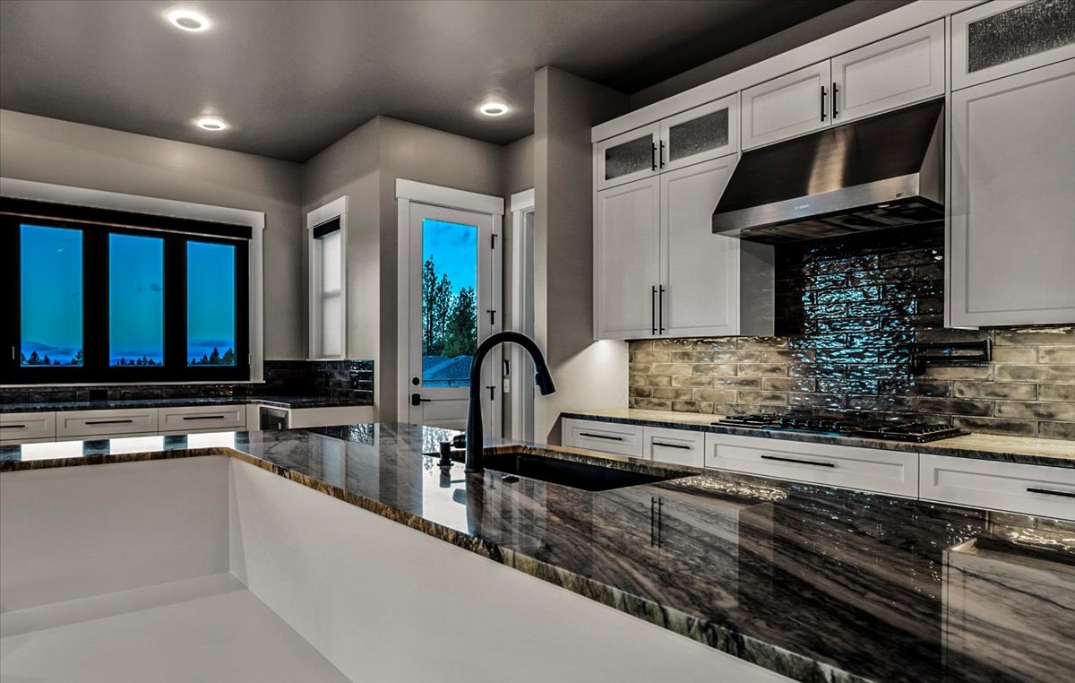Sitting at the top of a sharply sloping lot, Twin Peaks commands an uninterrupted panoramic view of the Cascade Mountain range to the west. Built with outdoor living in mind – the house features a large patio area with tv’s, outdoor heaters, hot tub, bar pass through, and firepit.